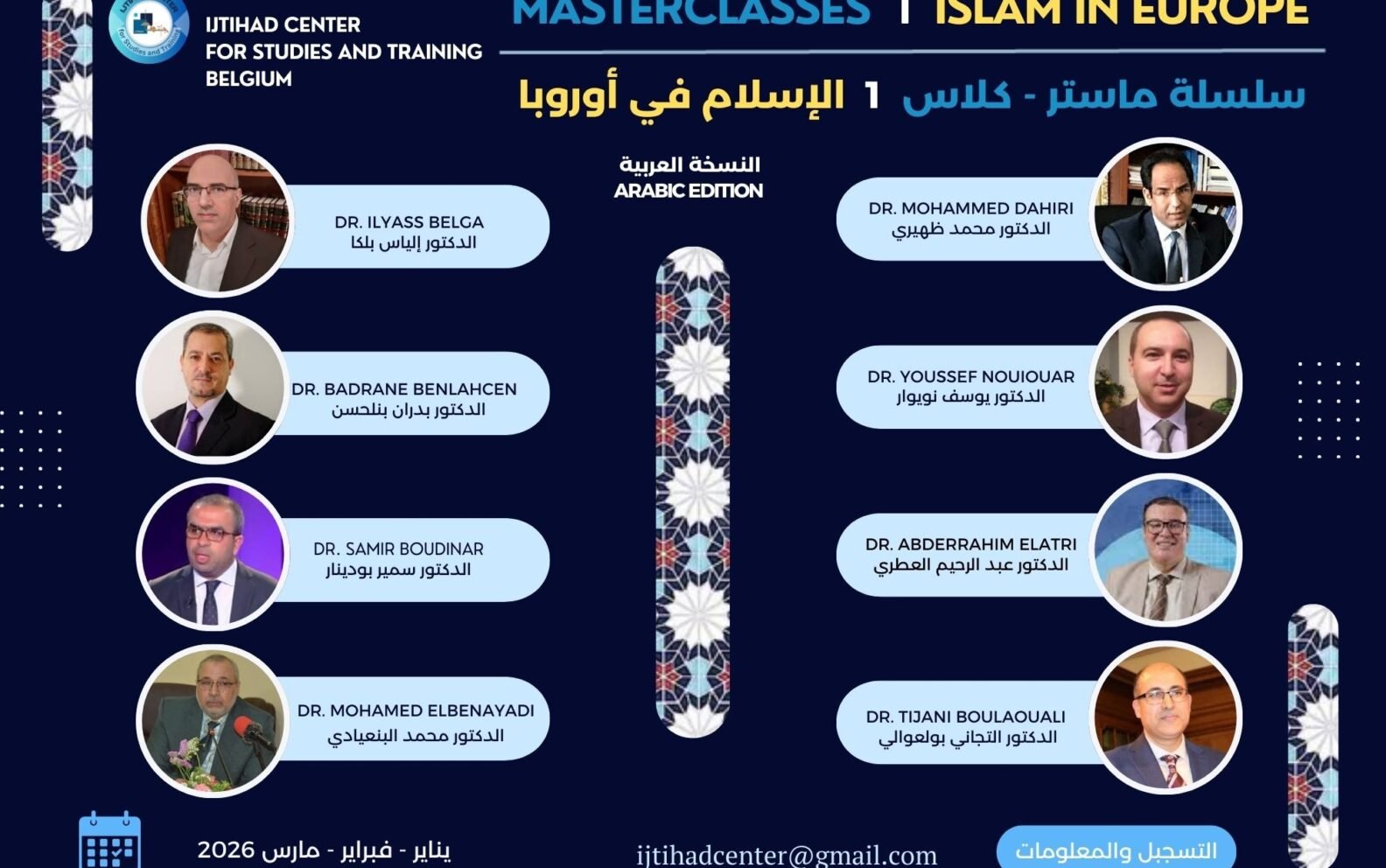 سلسلة أكاديمية تكوينية تتكون من ثمانية لقاءات يؤطرها أساتذة متخصصون من جامعات ومراكز بحثية أوروبية وعربية، وتعالج مجموعة من الموضوعات، مثل الاستشراق، الاستغراب، تمثلات الإسلام وصورته، الإسلاموفوبيا، حوار الأديان والثقافات، قضايا الهجرة، وغيرها.